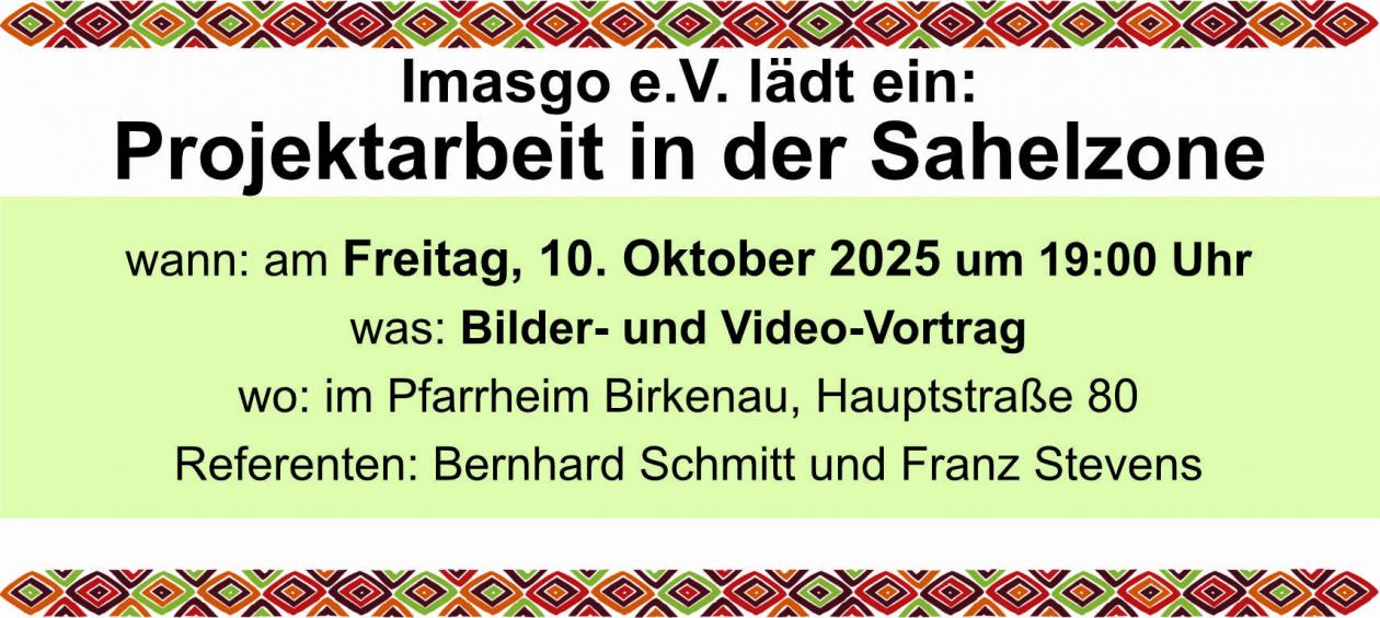 Der Verein wurde am 17.1.2019 in Birkenau gegründet, mit dem Ziel, soziale Projekte in Burkina Faso - vorrrangig im Departmenten Imasgo - zu fördern. Die Pfarrei Birkenau hat uns gebeten, auch die weitere Organisation der vor über 25 Jahren begonnen Partnerschaft mit der Pfarrei in Imasgo mit zu übernehmen, also die Arbeit des Ausschusses "Christen für Afrika" fortzusetzen, dessen Mitglieder nun im Verein mitarbeiten. Die Eintragung in das Vereinsregister ist am 11. März 2019 erfolgt. Wer Mitglied werden möchte kann hier das Beitrittsformular herunterladen.